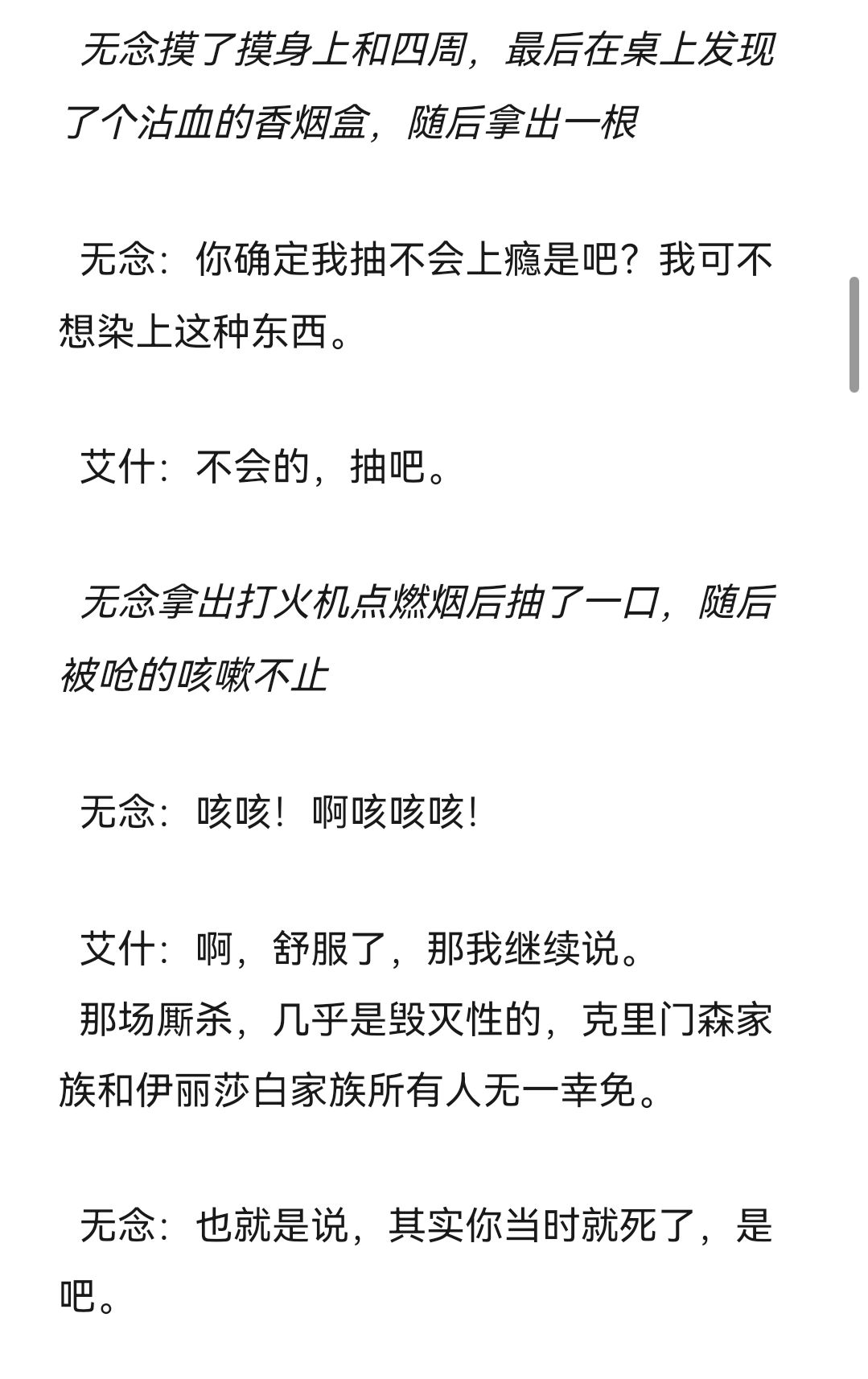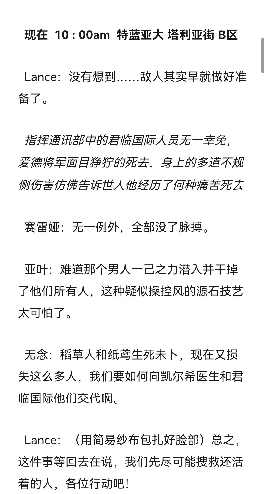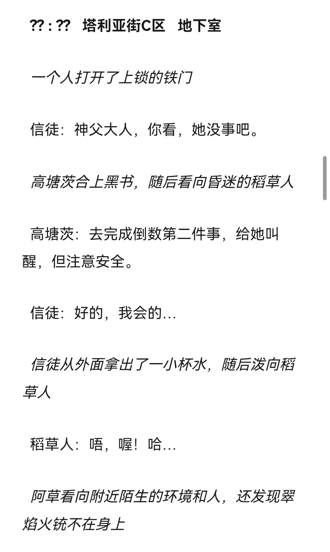 又是新篇,这篇更完后我要休息一下放慢制作速度,希望之后构建后面的剧情走向和那些角色死去,并且想想刀片何时发比较好,所以下周休刊!(bu shi)