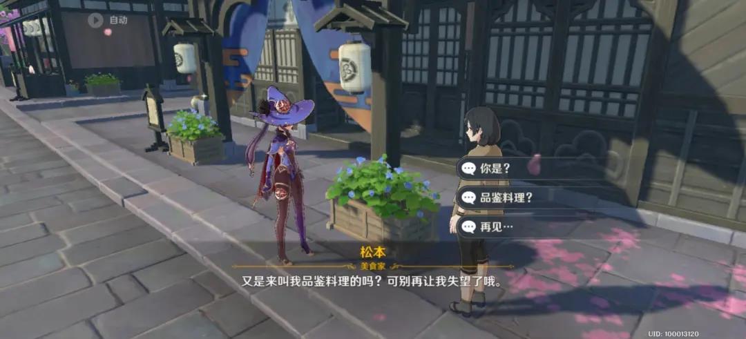 对话概述:松本是美食家,她说她可以品鉴料理。对话结束后会送给旅行者一份鸟蛋烧。