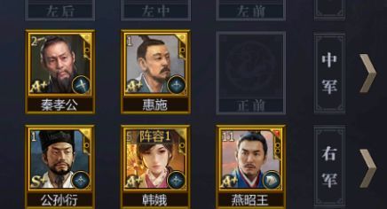 藏头阵,将最肉的可以吸收伤害的武将单独放到前面,后面摆成田字,中路后方放被动好的武将例如强秦、武威这种,他会最后进入战斗,不容易死,让技能触发率更高,弓兵摆成一字,重要的藏后面,或者如果藏对手有打最后排可以两个弓兵交换位置