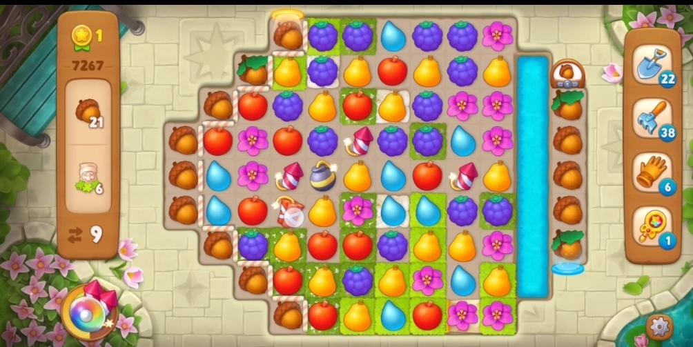 ⑧小矮人消除完成,现在只需要消除掉两个橡实就可以啦,还剩下四步,只需要在橡实周边消除一组元素就可以。