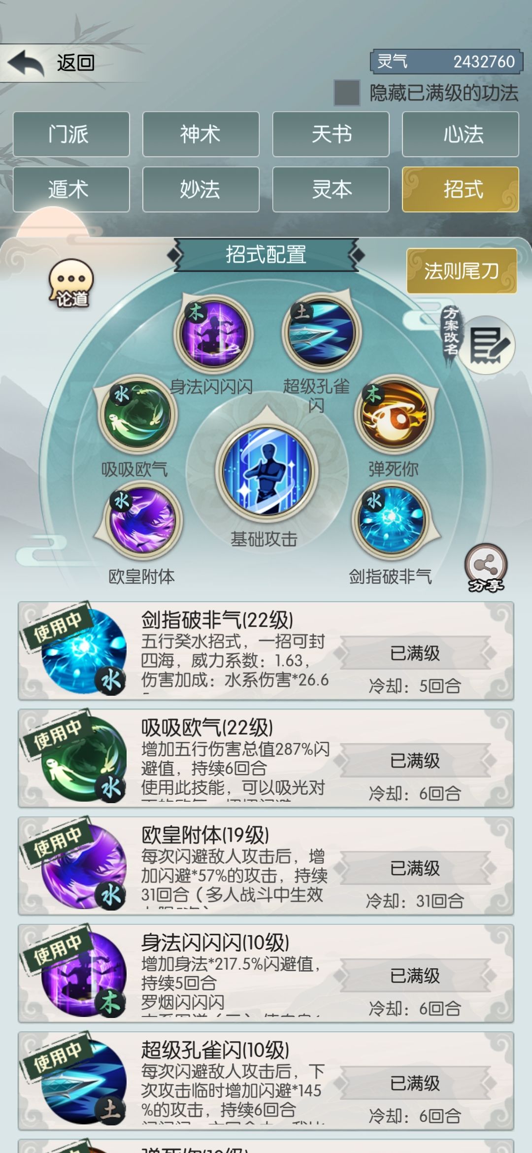 首先是招式顺序,孔雀,黄泉,罗烟,五鬼,缥缈,葵水