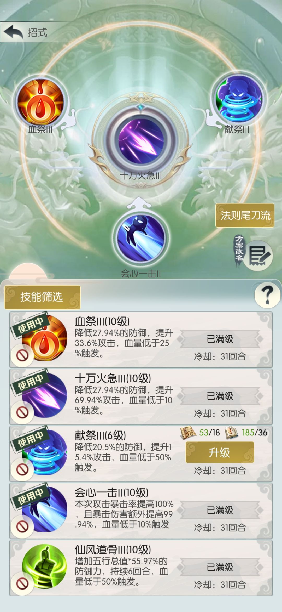 1.宿命回响加后发制人加会心一击,保证第六回合第七回合两个五行招式都能暴击