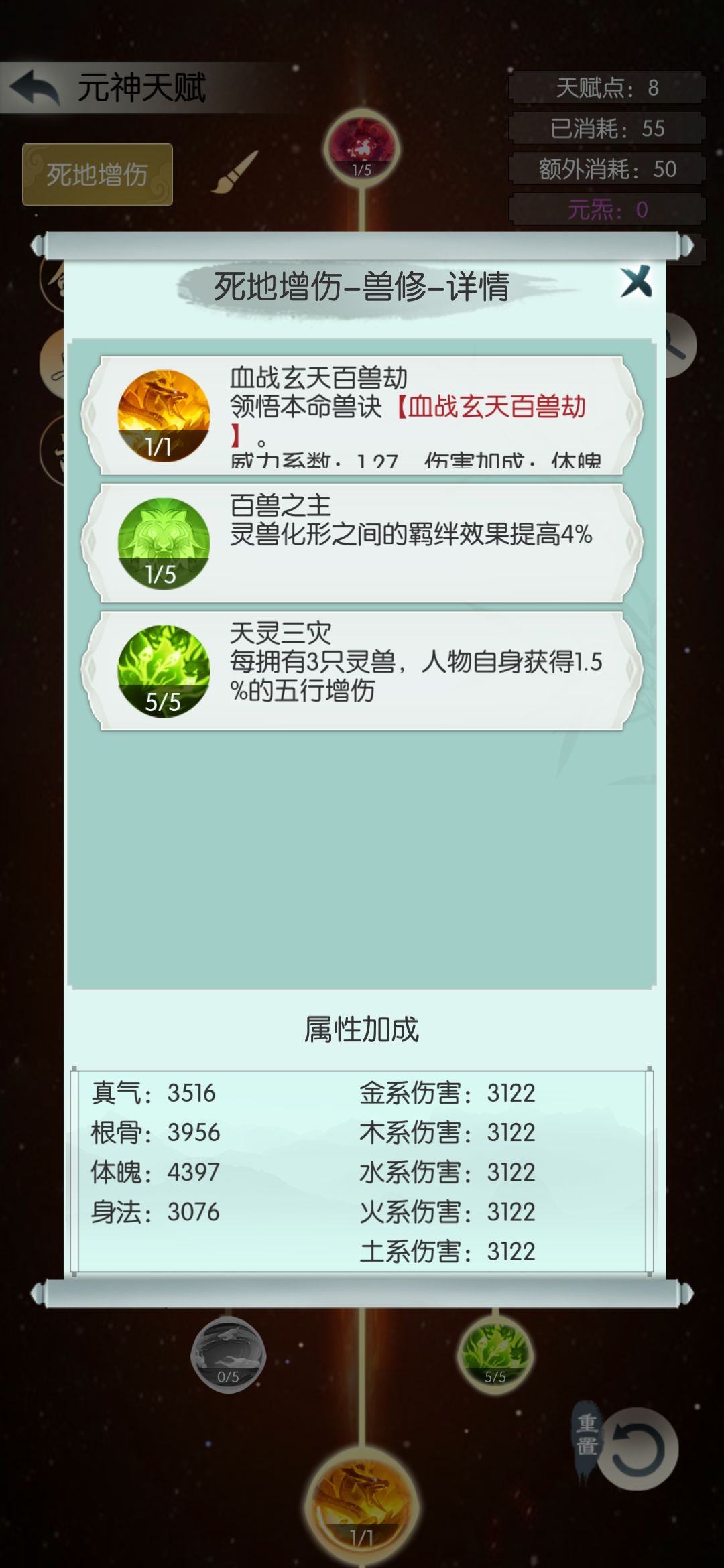 剑天赋左死地后生点满,兽天赋五行增伤点满(点不满慢慢点),天赋点多的可以把兽天赋继续往后面点