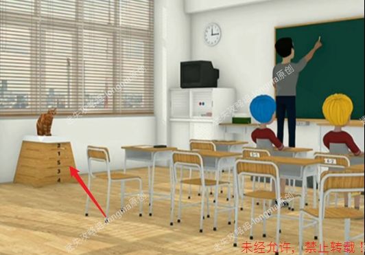 74.面向后面黑板左侧,点击有砚台的桌子,记住桌子上橡皮的条纹。74 74.1