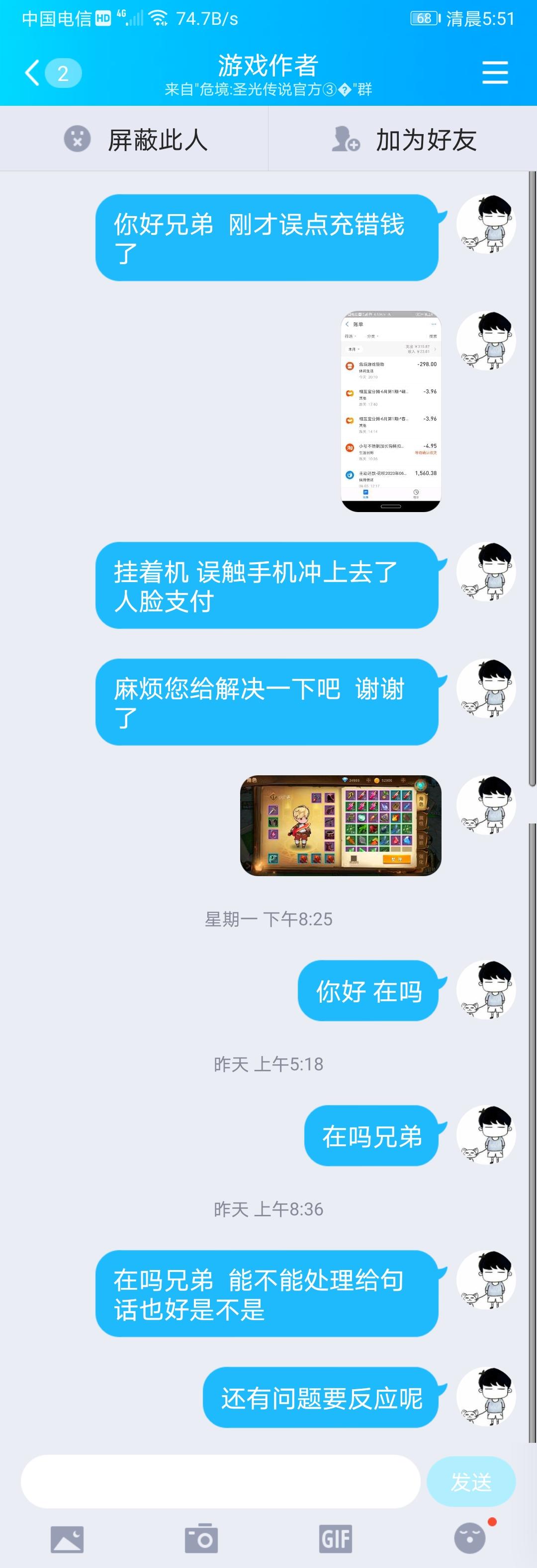 这钱花的不明不白的,再加上这游戏还是内测阶段,咋整 ,那咱联系客服吧,看看能不能给多少给退一些 支付内容都写了是赞助,把情况给人说清楚或许有缓儿呢?