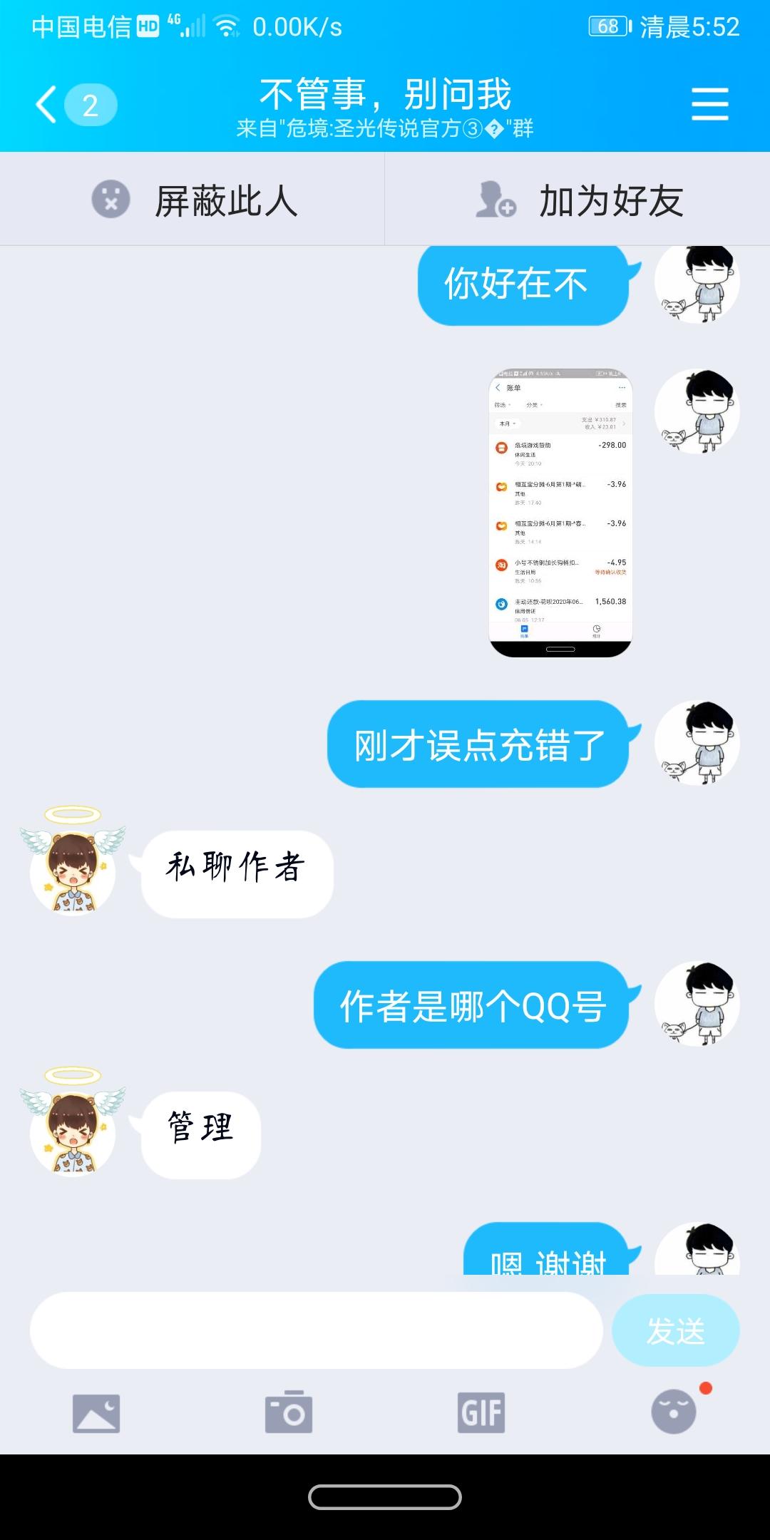 咱先不说这个钱该或者不该退,一个内测游戏充值了也确实赖我自己,我呢就是抱着试试的心态来的,毕竟这充的不明不白的,您退或不退至少给咱个话儿对不对,一共四个管理,一个说“联系作者”
