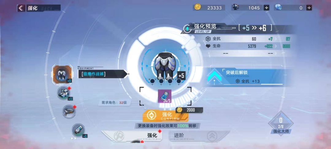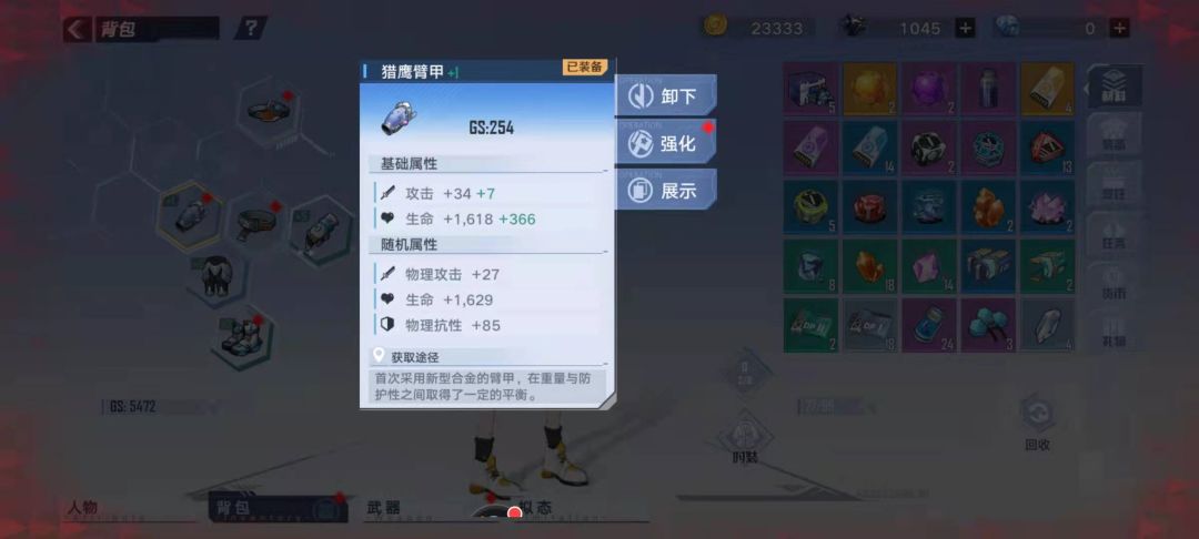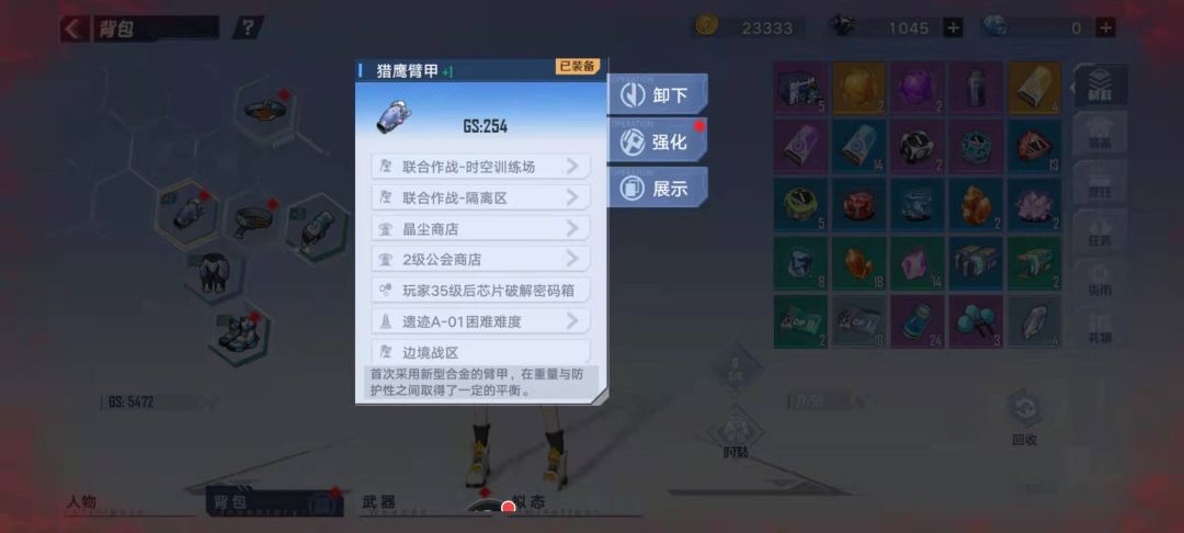 装备的养成同样分为强化和进阶2种,强化需要消耗强化模组升级到一定阶段需要消耗进阶模组突破,可在旧日幻象,晶尘商店,每日补给,拾荒笔记这四种途径获取,进阶则需要消耗晶石和同名装备,晶石可在大世界探索的路上获得。