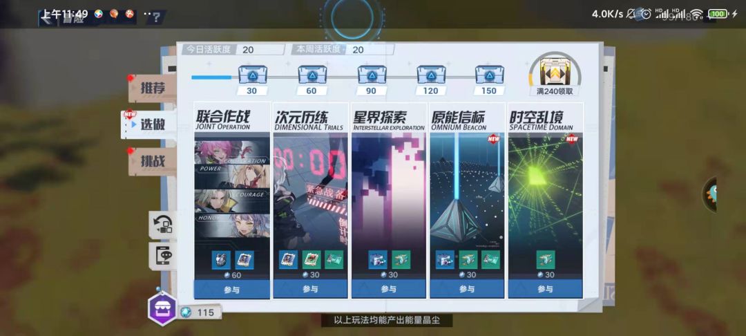 意志的获取除了相关任务奖励和大世界探索概率获得之外还可以通过意志精选特供进行抽取,保底40必出SSR,前期的联合作战和次元历练是获得意志的主要途径,联合作战共有5关,每周轮流开放,每关共有7个难度,分为3波怪,第一波小怪,第二波精英怪加小怪,第三波boss,每通过一波可以开启一个宝箱,可以获取装备和意志,次元历练每日随机生成3个副本挑战,击败首领可以获得意志和数据包奖励,以上玩法最多可以四人组队参加,建议优先联合作战,前面宝箱可以不拿直接拿最后的,但是难度较高对练度要求比较高,后期开发虚空裂隙可以掉落金色意志,所以前期刷一套过渡即可多攒体力剂后期刷金色意志。