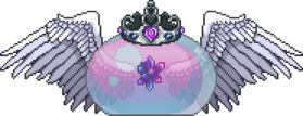 史莱姆皇后纪念章:一根被粉色明胶包裹的羽毛制成的纪念章,用于纪念你征服了这一巨大的天使;