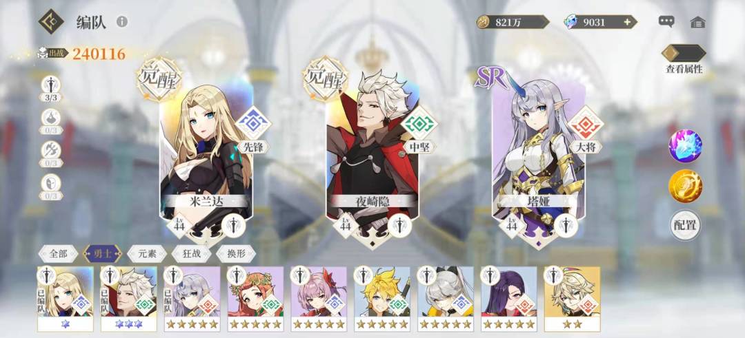 米兰达+夜琦隐(觉醒质变,伤害你根本看不懂)+塔娅(sr,3星可用,5星更好/米雅诺觉醒前的代替)
