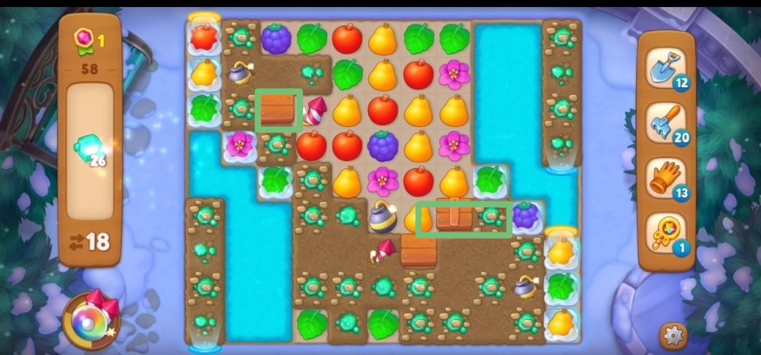 ③有的土块被箱子遮挡,可以在箱子旁边匹配元素或者炸开箱子,两块木头的箱子需要一次消除,三块木头的箱子需要两次消除,如图所示。