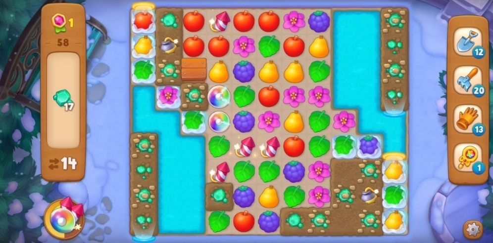 冰层:需要与冰层里的元素进行相对应的匹配或者用炸弹炸开,冰层的厚度决定需要消除的次数。