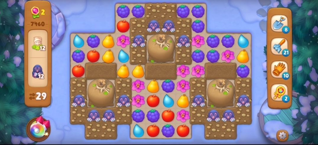 ①首先观察一下元素的布局,这一关是29步可以看到明面上的元素有树叶袋和地鼠以及土块。