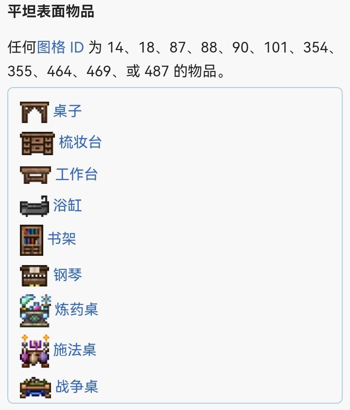 “众所周知”,每个 NPC 都需要有一间合适的空房屋。所谓房屋,指的是由物块组成的边框和玩家放置的背景墙来完成封闭的特定大小的房间。(这个可以看我发的另外一个帖子。)