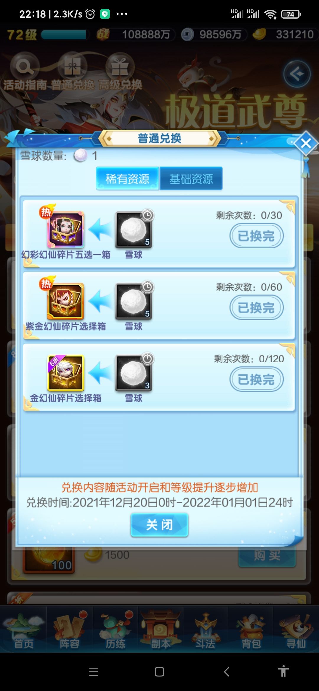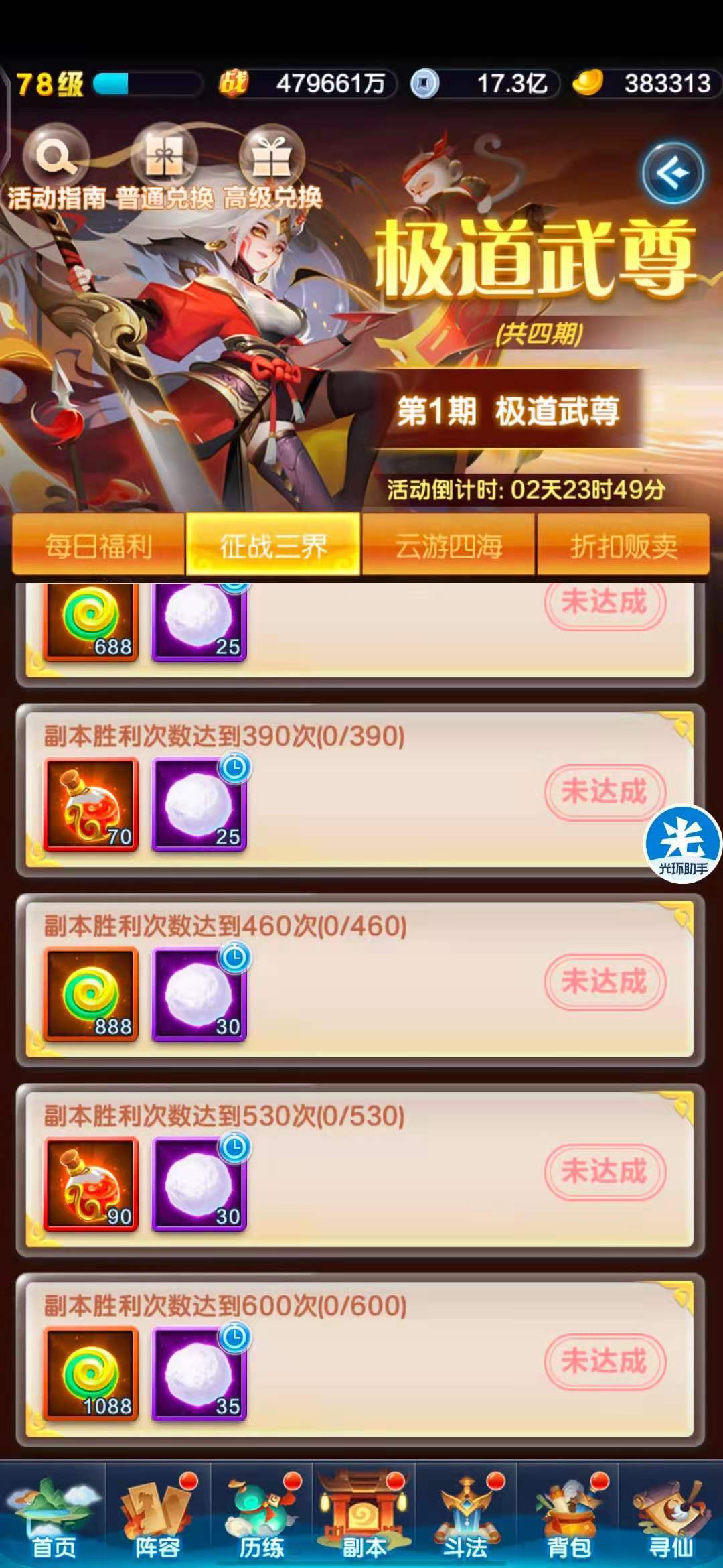 战力18亿、元宝36万、副本35,趁着有刚开幻仙刷了一波竞技场,只涨了5亿战力,感觉别人开幻仙都有20亿+,我是哪里没弄吗,20亿都到不了,不开心。