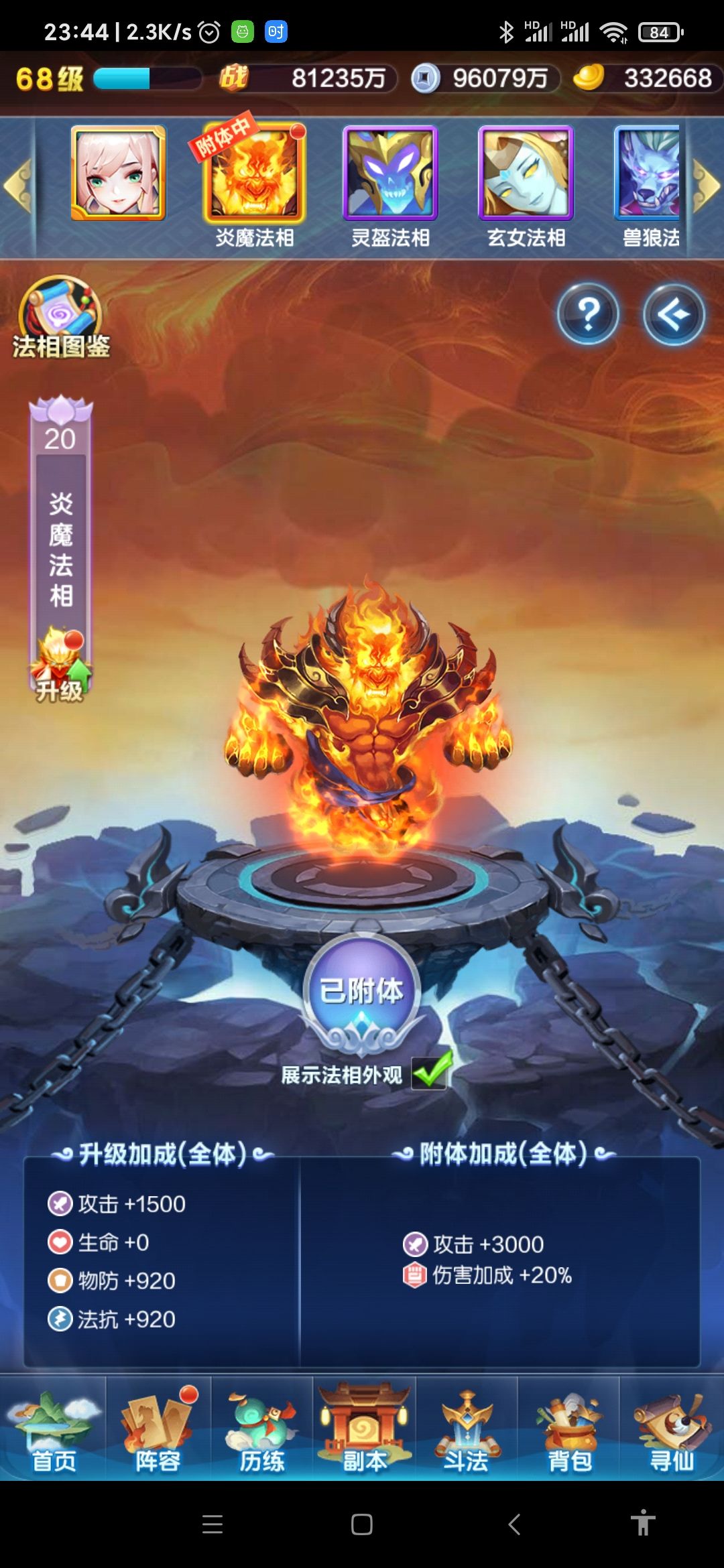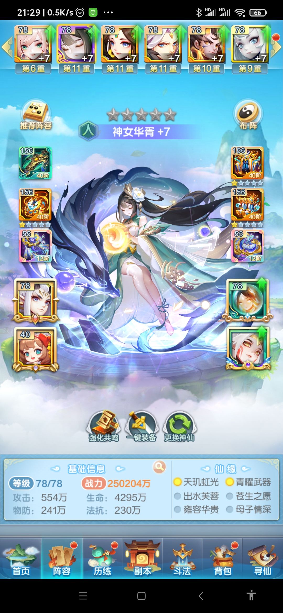 战力75亿、元宝26万、副本全三星通关,切了一星幻化,还是以紫虚为主核。