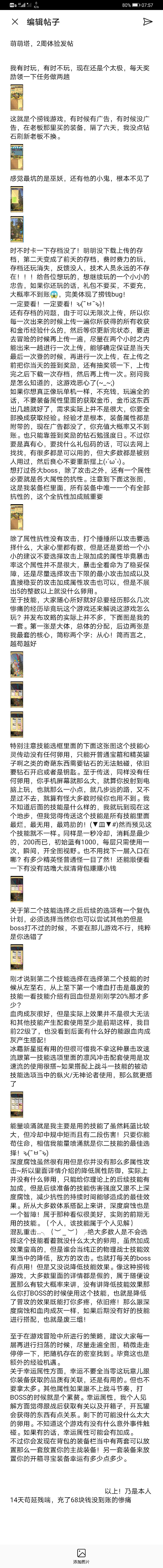 最开始玩不是在tip我接触到这个游戏的时候,它已经发布好久了,虽然早就知道了这个游戏,但是那时候在考驾照,虽然没过,但是也只能能我玩玩游戏,调节心情,重新搞后来接触这个游戏的时候,是在华为游戏中心目前为止,我体验了两周,今天不算到昨天为止。在发射帖子的15分钟之前,我在华为游戏中心发了评论,不过我觉得大概率讲他会删,至于概率嘛,99.999…999%往上吧!现在正在审核也懒得再打一遍字。所以我在游戏中心的草稿箱里面,在编辑状态直接截图当中说的话就是我的眼泪,我第一次发没什么经验。望各位海涵~话不多说,上图!