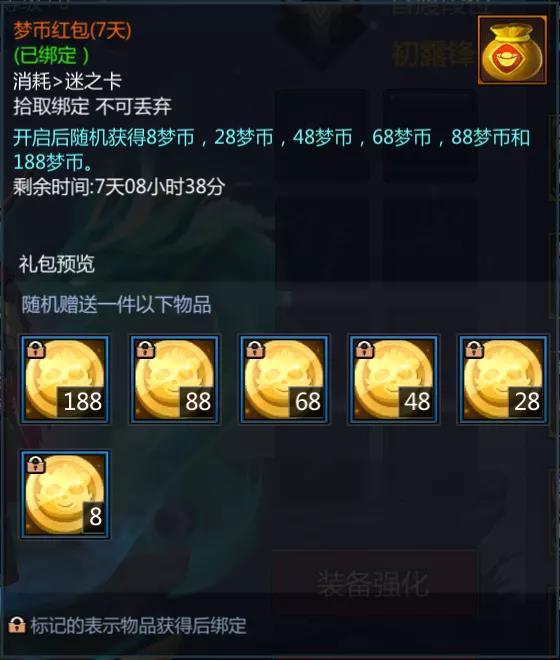 6月18日-6月24日,等级≧11,每日20:00-22:59在线30分钟可获得梦币红包(7天)*1