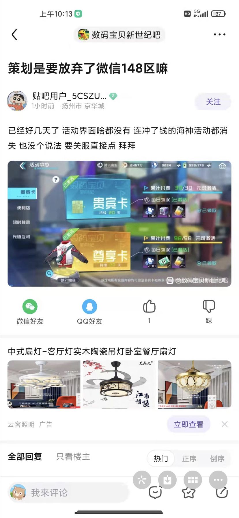 我真的不想吐槽,各种bug,148区,插件体力活动,点心制作活动,12块钱的连冲活动,通通没有了,今天第三天了,腾讯客服找过了,没有一点动静,真的就放弃我们区了???
