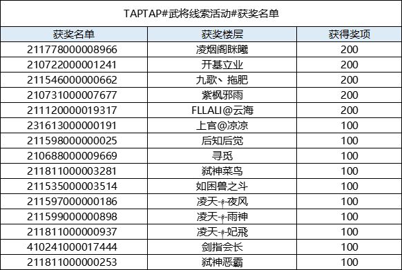 恭喜以下主公获得本次奖励,奖励将会在7个工作日内进行发布