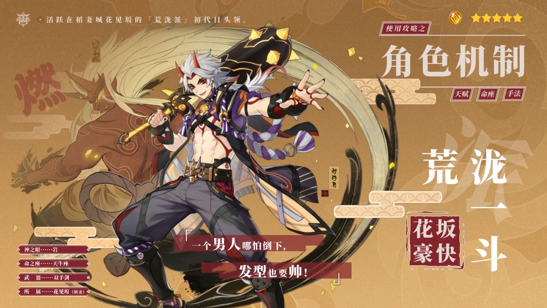 本贴为荒泷一斗的角色机制介绍,武器圣遗物以及阵容搭配的链接已放下方,戳链接可直接传送。