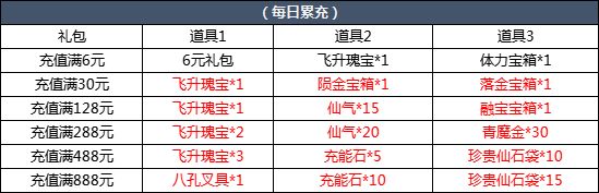 【活动简介】活动期间,每日累计充值达到指定金额即可领取相应好礼。