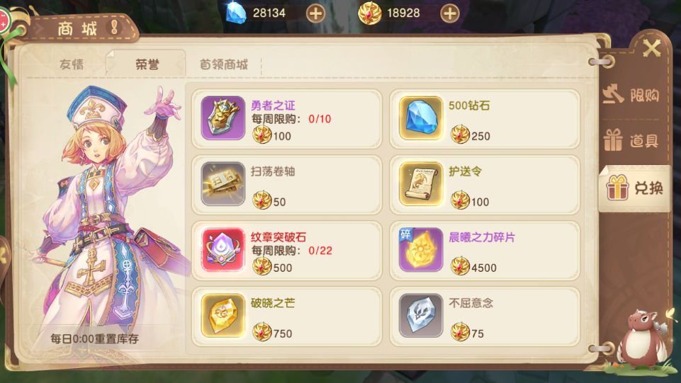 荣誉值可在荣誉商店中兑换头衔、纹章、光武等材料道具~