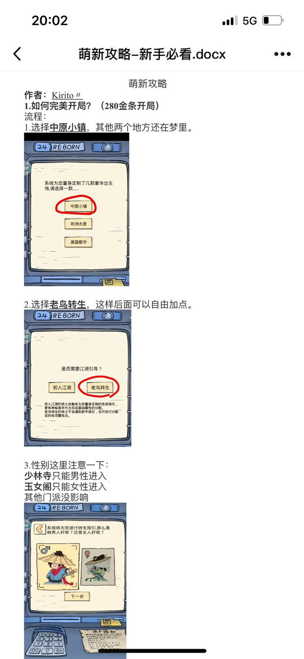 思路1:男号雪山开局,福地操作雷同。带走雪山剑法和神行,女号轮回去百花谷,拿玉女剑法,即可凑齐剑法绝学。缺点是:雪山门派在前期开荒福地相比上述四大门派会弱不少,可能会慢一个星期福地(氪佬随意)