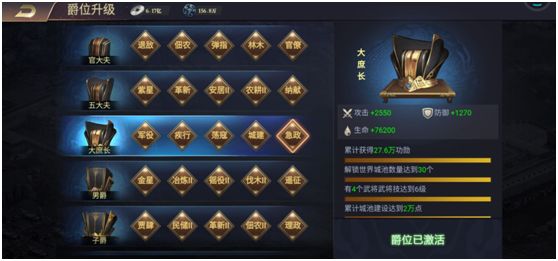 这个不必说,大殿等级决定了其他所有建筑等级,而大殿等级上限又与爵位有关。爵位取决于政务次数,推荐每天买2次政务次数,有条件的可以买满。政务尽量刷号角任务做。在更新前武将星级会卡你爵位等级,更新后好了许多。这里有个技巧,假如你需要比如6个紫色一星武将升级爵位,但是残魂不够,可以通过重生其他武将,将所有残魂集中在少数武将身上,等解锁爵位后再重新分配残魂。爵位特权的效果还是很不错的,需要战功解锁。笔者最喜欢的是跨城池收集打怪的效果,一般优先升级。