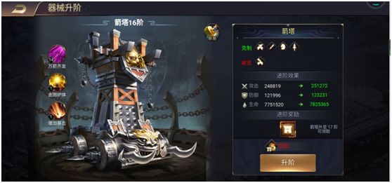 器械和兵营差不多,刚解锁时加战力加的飞起,箭克武将和弩,弩克投石,投石克箭。城墙在守城时效果很好,后期器械作用不是特别大。