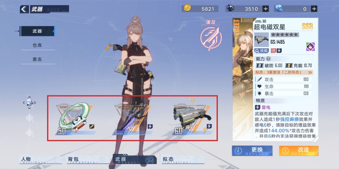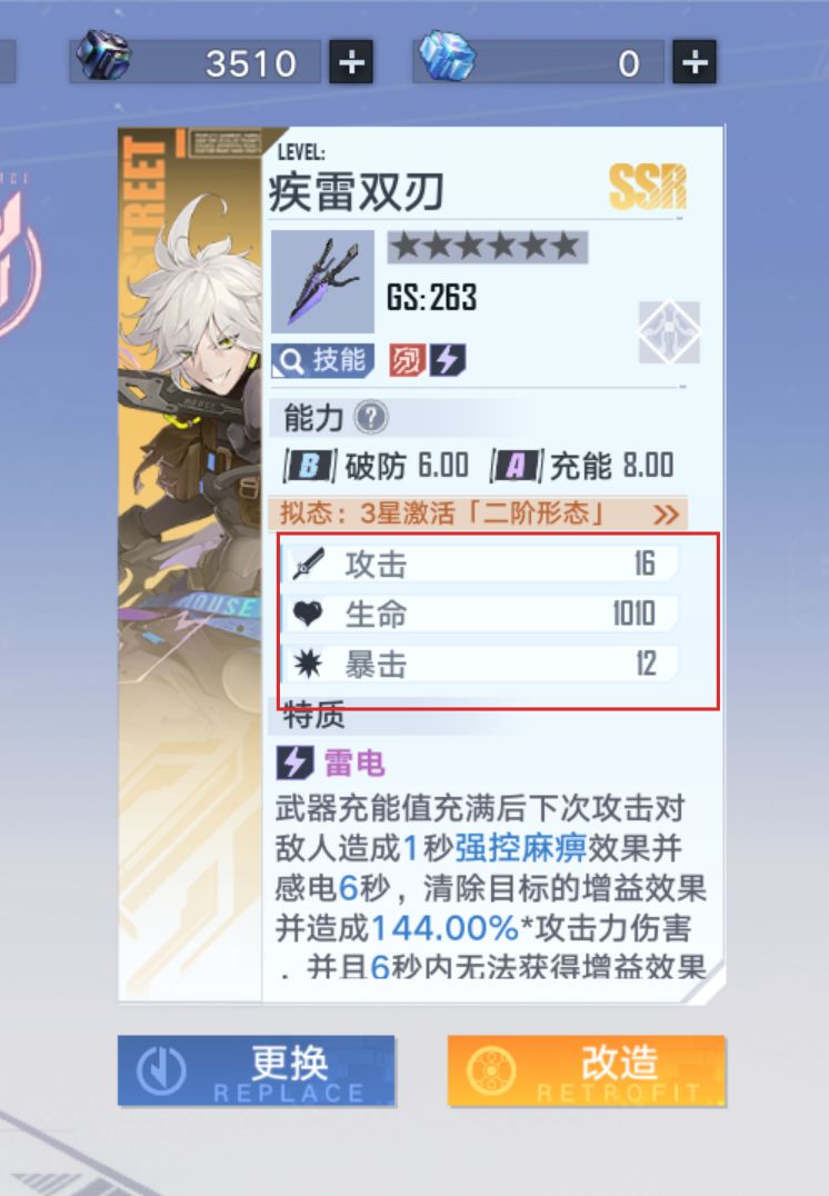 3、主场输出武器(充能及破防相对均衡,有着快速攻击,高额攻击以及暴击!是技能真空期及连携技必使用的主要武器!)这才是真正的主角!!!