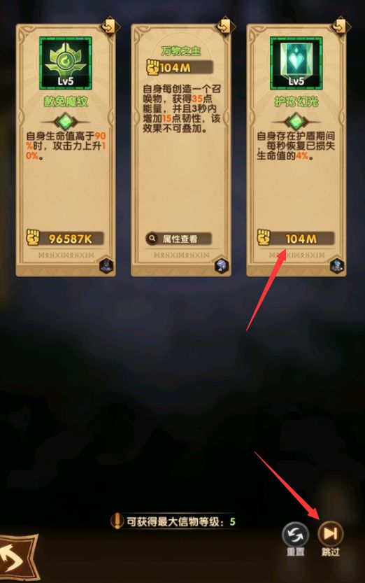信物抉择无需费劲看技能,看战力就行,选战力高的,点击后系统会自动给你比对战力的,三个都不行跳过即可