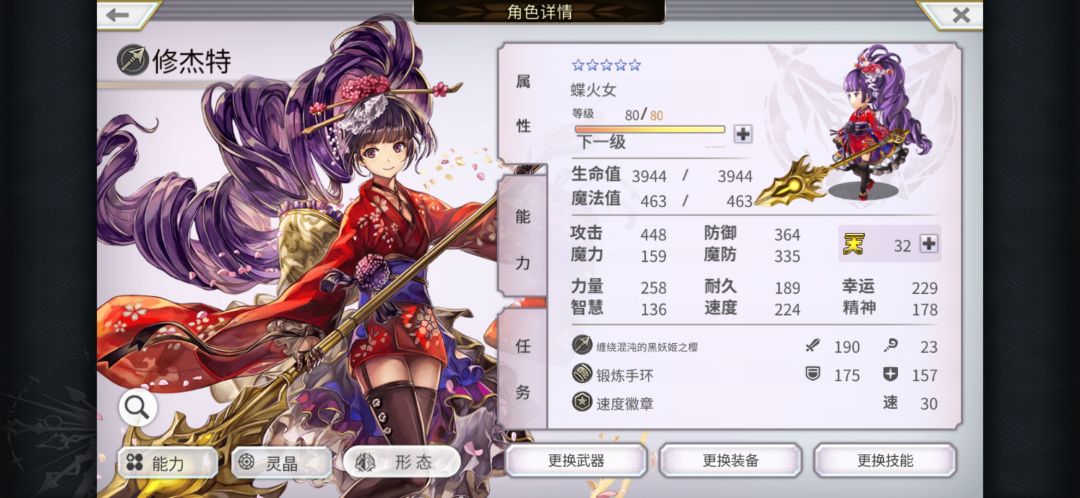蝶火:智之诅咒(p3会用一下,蝶火要带降智那个技能),烈风之力, 暴击之力