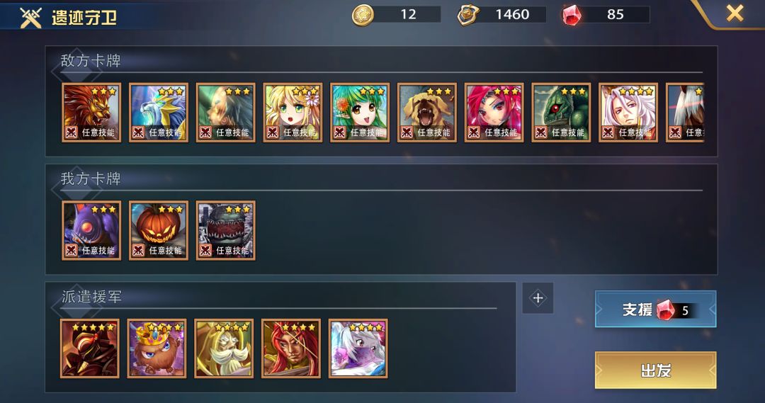 战术安排:合理的安排上阵卡牌,因为部分关卡有上阵人数限制要求,所以可以多尝试使用最少最精简的卡牌过关,合理的排兵布阵更能显示出您的控场力!