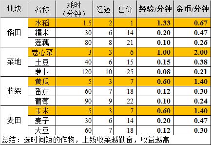 个人技巧:其他收益极低的农作物,建议每样储存5个以内,用于每日任务消耗,这里会有人说,如果任务需要5个以上怎么办,而且库存又紧张,那以下就是我的做法。对于我来说,每一块地只要我不收取,就可以作为仓库的一部分,晚上睡觉前可以挂上时间长的这几样,等你醒来后,第一件事先看任务需要什么,就收什么,然后交付任务即可。根据任务去收获,而不是全部收获完,再去做任务,不然库存紧张,任务效率又低,等快速完成任务后,就可以无脑刷上面提到的4样收益高的农作物。