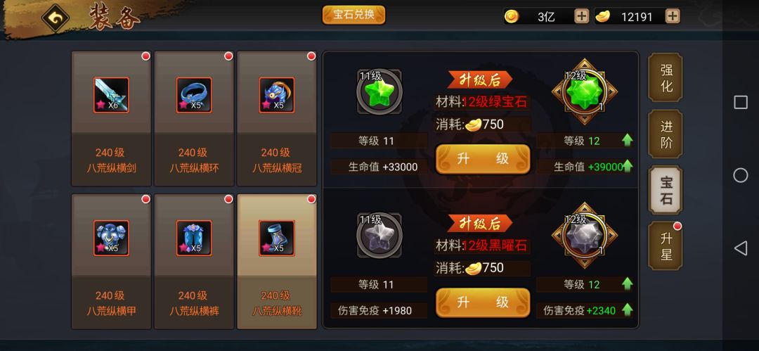④.小编建议主公在积累宝石的时候注意均衡发展,不要一味堆攻击力,而忽略了生命值,因为均衡发展宝石可以激活“大师属性”加成,从而更高的提升战力。