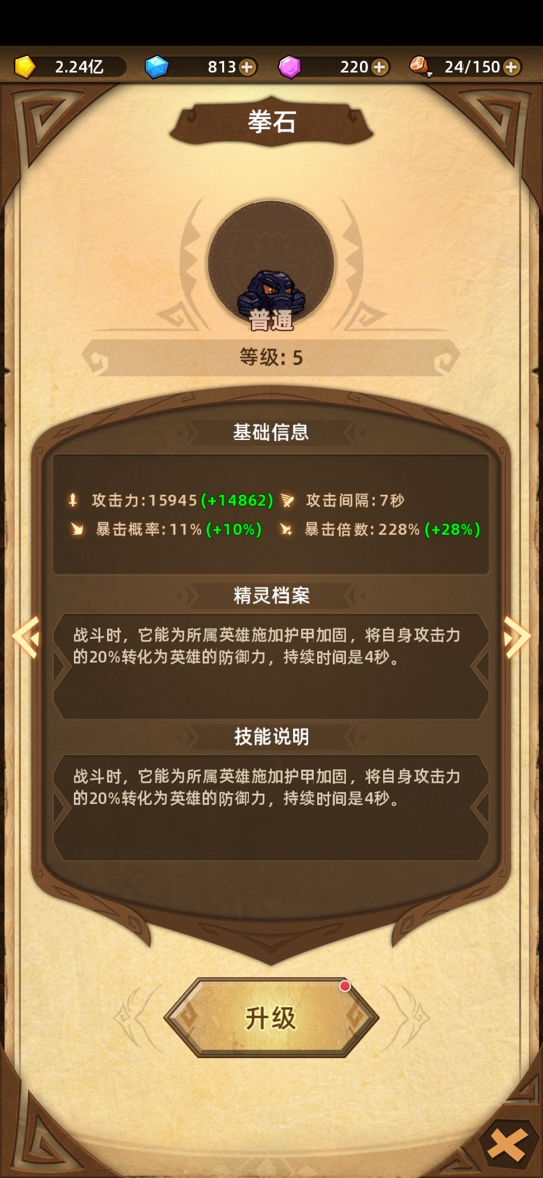 第四层秘境,迷你精灵拳石。效果一般,没字面上那么好用,只能说如果你想不到带什么就带他吧。