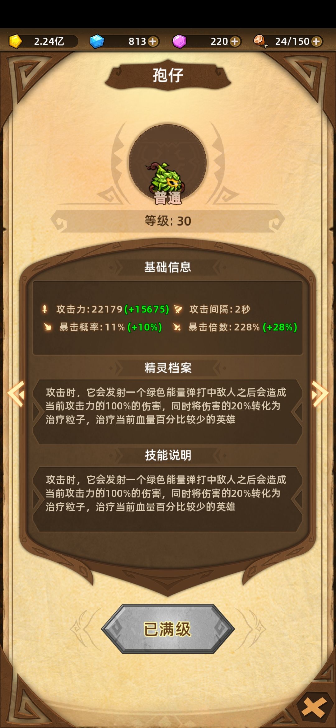 第二层秘境,迷你精灵孢仔。少有的回血精灵,虽然回血量少,后期等于没有,但前期带上它战斗很舒服,对平民玩家来说更是免费奶源,战斗必带。🙉