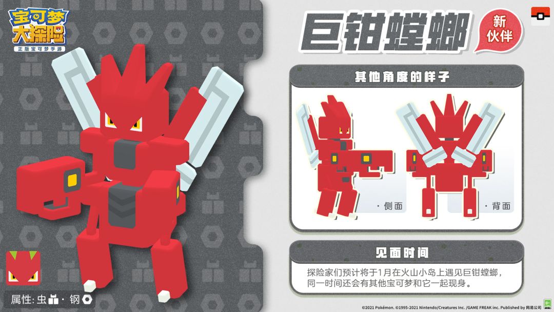 巨钳螳螂和莲叶童子将在1月于火山小岛上现身,同一时间,还会有其他宝可梦共同加盟哦~期待探险家们与这些全新宝可梦在方可乐岛上拥有美好又精彩的回忆~