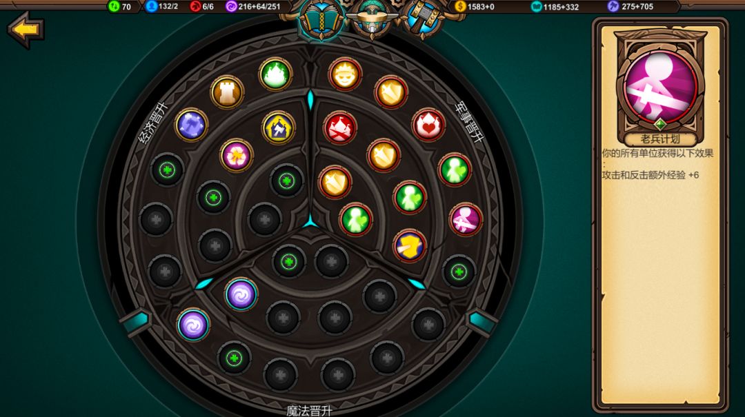 (上面说到知识升级和锤子升级那就要聊到一个操作习惯:回合开始时候注意知识/锤子(一方面此时人口低,升级费用,另一方面会这操作可能会提升部队的当回合战斗力),回合结束前检查并操作金币(投资建筑,招募军队),回合结束检查魔法是否会溢出(作出魔法实用上的规划)