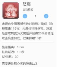 释放怒爆之后10秒内增加20%物攻(直接在面板显示)