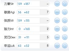 4、拥有扭蛋 [美妙合奏](推荐): 我自己正是这个,优先把6围都点到自身BUFF后全部119,剩下的分配到V和S,下面贴一下我目前的素质,agi那里少了1点请勿吐槽,我会补回去的