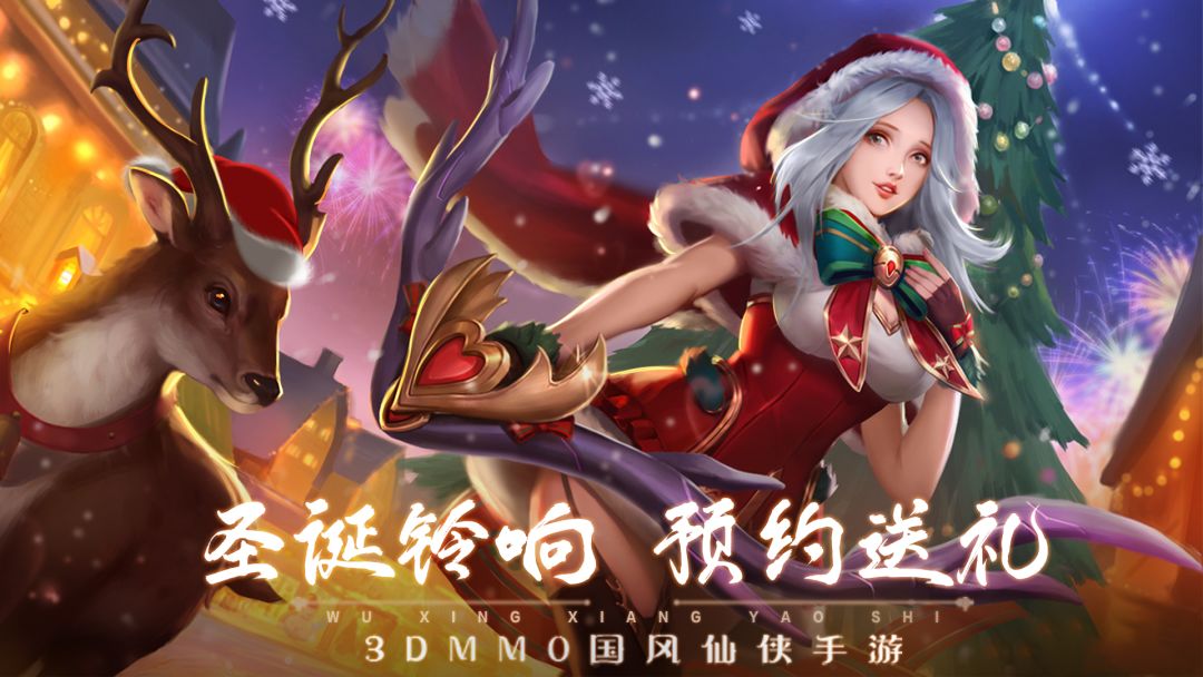 “麋鹿送来祝福,雪橇满载礼物”,白雪初降,五行大陆穿上了银色的新装,圣诞树出现在了道京城。