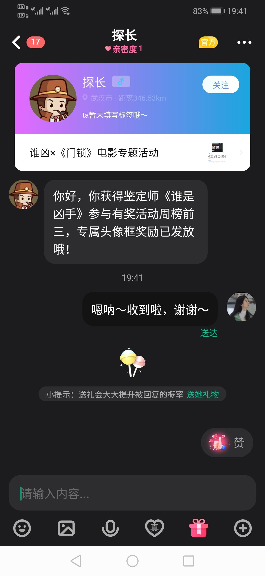 hhh今天收到探长发的消息~