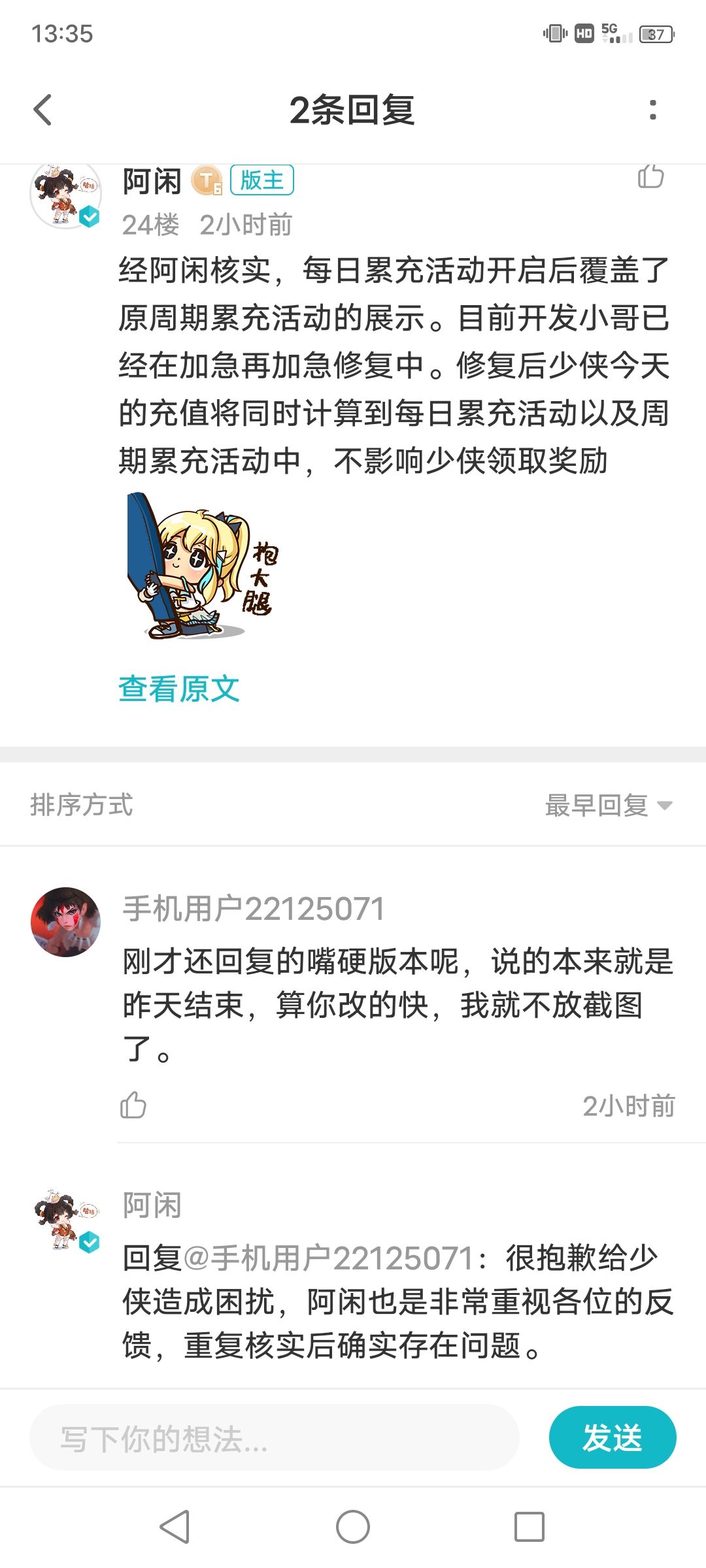 建议重视游戏bug和策划漏洞,出现一个解决后给玩家适当补偿。不给全服发补偿,也要给出现bug的玩家足够补偿,同时给提出有效bug的玩家激励。