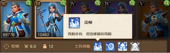 法师作为后排输出单位,不像步兵那样较为平衡,在三维属性上更偏向于攻击,身板自然也是比较脆。法师分巫师和牧师,巫师更偏向于极限的输出,牧师则拥有较高的生命值,可以为远程单位吸收部分伤害。法师克制步兵但是较为惧怕骑兵。