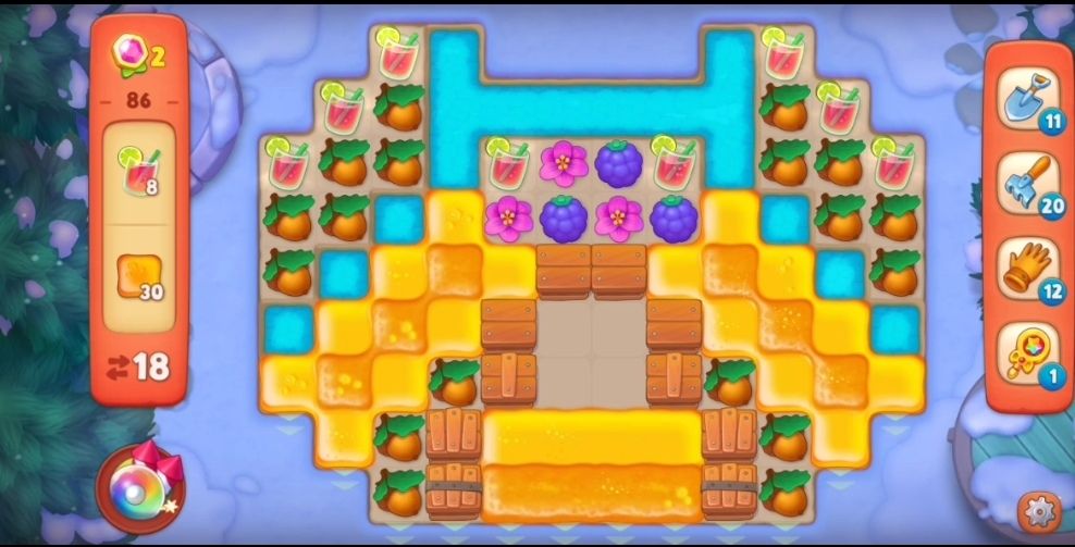 ①先观察一下开局,这一关一共是18步,我们的过关目标是柠檬杯和蜂蜜。