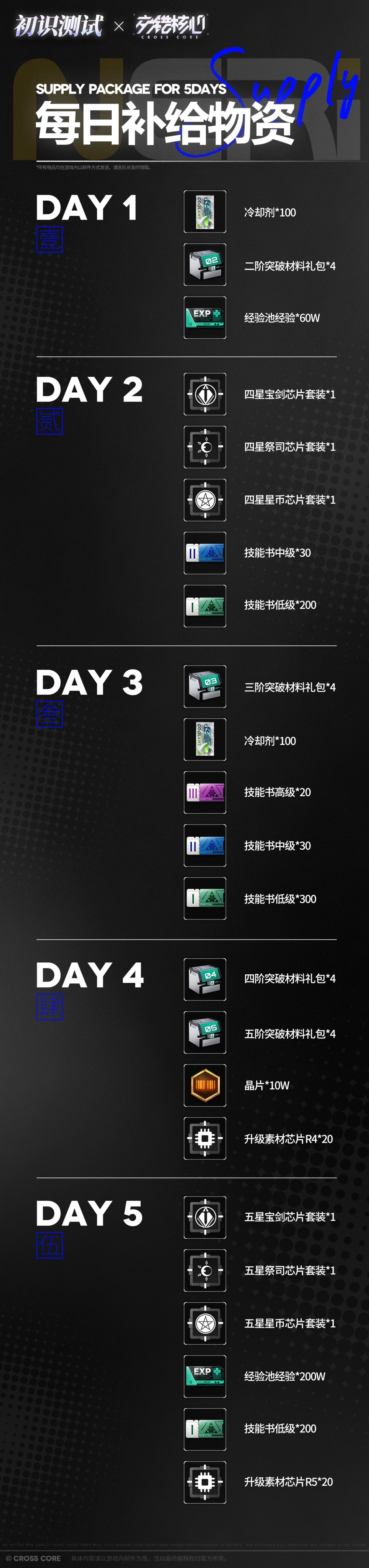 初识测试期内,每日16:00我们将准时通过邮件发送物资,其中含有大量角色强化用素材。