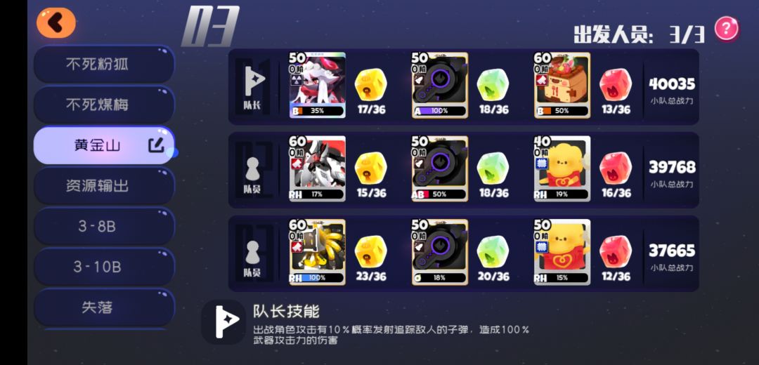 然后我用盒子当队长,发现提升的并不多,然后看了一下黑鱿鱼的被动技能和队长技能,就尝试让黑鱿鱼当队长看看,因为黄金山都用彩虹,再有盒子和小林的辅助,攻速是非常快的,很容易触发黑鱿鱼攻击10%几率发射跟踪敌人的子弹,然后惊喜的发现黄金山又有提升了,而且用五星的彩虹打SS也能达到及格线1000果冻,萌新小伙伴们可以自行测试一下。