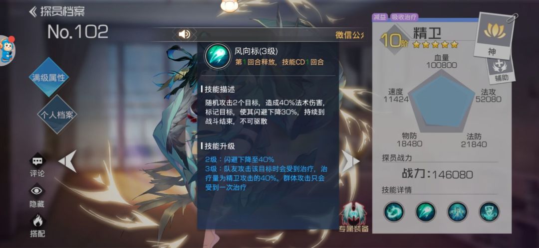 由于第2、3阶段专武需要前置条件,需要被风向标技能(随机打2个单位)打到的目标才生效,所以挂替补无效,